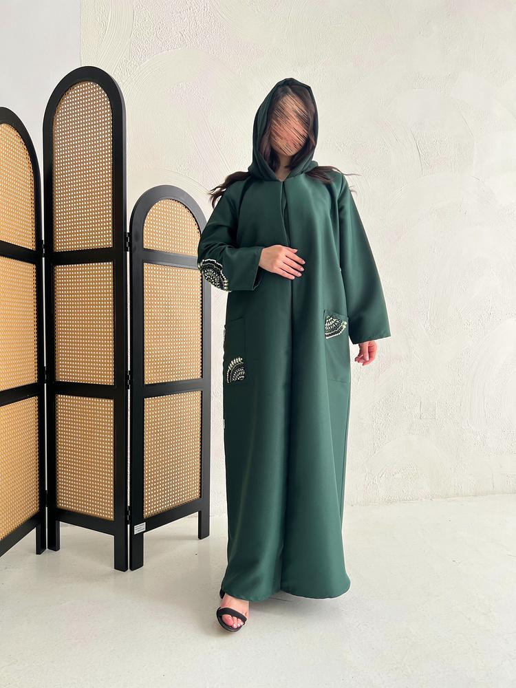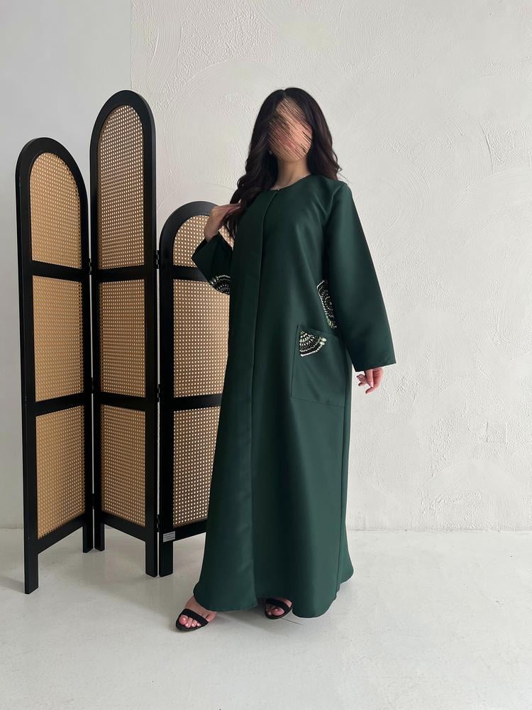 أضيفي لمسة من الفخامة لإطلالتك مع عباية نسائية بتصميم ستريت أنيق من قماش الشنتون الفاخر بلون زيتي جذاب يبرز جمالك بلمسة عصرية.